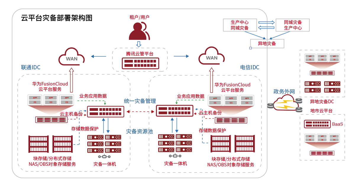 3、基于兩地三中心的災備體系建設和規范化的服務流程管理,為省級政務云平臺承載的信息化業務系統提供全面的本地備份、同城容災和異地災備的全面數據安全保護服務。