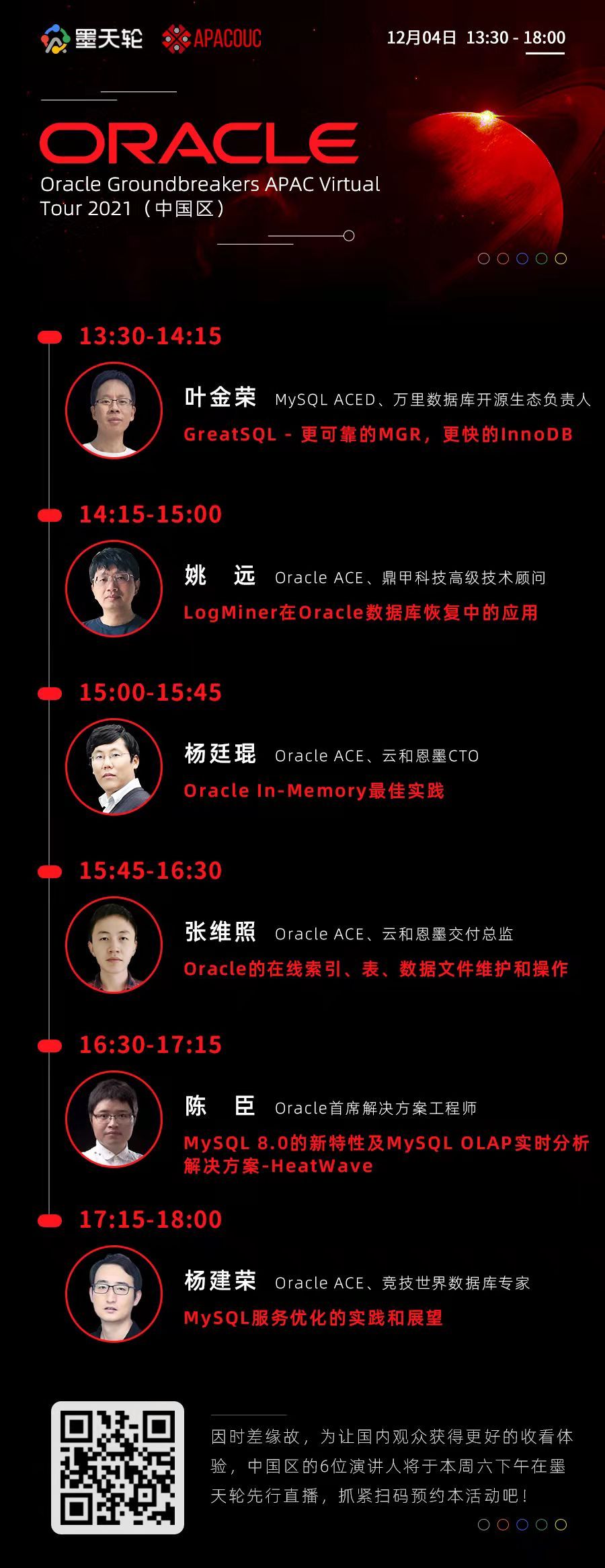 12月4日下午1:30-6:00,來自中國區(qū)的6位技術(shù)大咖與您相約Oracle Groundbreakers直播間。敬請期待!