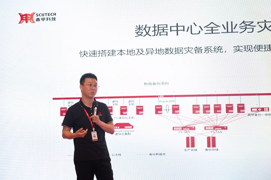 隨后,鼎甲西北區(qū)技術(shù)總監(jiān)徐煒介紹了鼎甲的最新產(chǎn)品解決方案,隆重推出適應云邊端場景的應用級容災產(chǎn)品組合,通過滿足混合云復雜環(huán)境一鍵容災切換和實現(xiàn)秒級 RPO、分鐘級 RTO 的整機應急接管,助力用戶可靠的業(yè)務連續(xù)。其次,在產(chǎn)品升級方面,鼎甲的王牌產(chǎn)品DBackup在兼容適配、備份效率、應急能力、云化適應和運維能力上,一如既往地實現(xiàn)更多突破:首家支持達夢多集群備份,支持集群架構(gòu)種類為國內(nèi)之最,幫助用戶管理化繁為簡。首個針對重刪數(shù)據(jù)的分布式集群,備份效率提升達50%以上,無懼數(shù)據(jù)增長。在新功能上,鼎甲新增包括 Oracle 應急與生產(chǎn)數(shù)據(jù)一鍵回遷、DBackup 元數(shù)據(jù)云端自保護等功能,針對 VMware 備份也實現(xiàn)進一步優(yōu)化,為客戶提供更成熟、更易管、更云化的極致體驗。