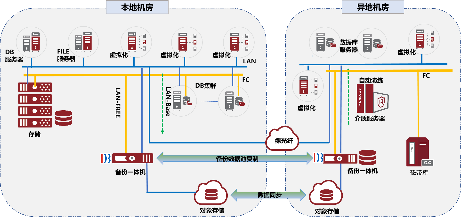 在客戶的同城和異地機房分別部署國產(chǎn)備份系統(tǒng),逐步替換一直沿用的國外友商備份系統(tǒng),不僅兼容麒麟、海光等純國產(chǎn)環(huán)境服務器,同時支持物理機、虛擬機等各種異構(gòu)環(huán)境的備份要求,完全滿足現(xiàn)有業(yè)務系統(tǒng)的備份需求。