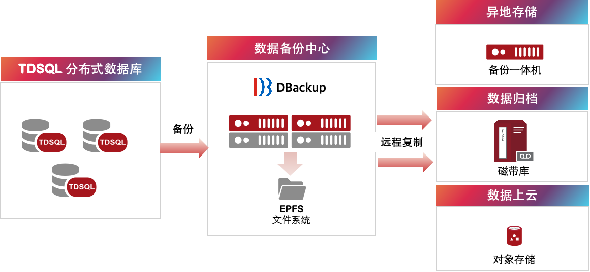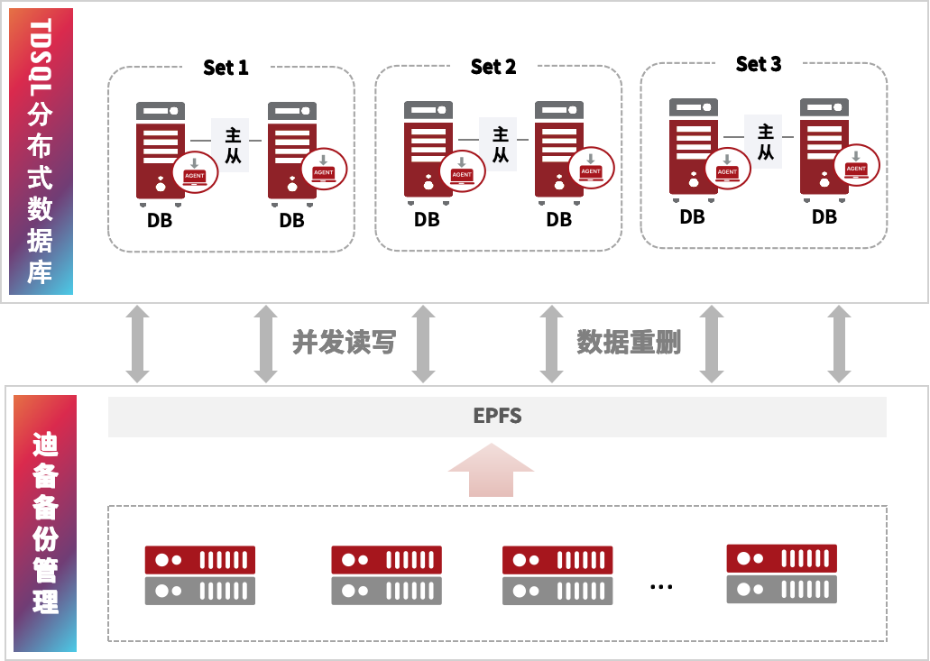 面對(duì)分布式數(shù)據(jù)庫(kù)的保護(hù)難題,鼎甲率先響應(yīng)并不斷致力于創(chuàng)新,從客戶的實(shí)際需求出發(fā),打造了適合分布式數(shù)據(jù)庫(kù)架構(gòu)的 EPFS(Extended Parallel File System)備份技術(shù),并結(jié)合數(shù)據(jù)庫(kù)提供的標(biāo)準(zhǔn)接口,為用戶提供了更高效、低成本、易于管理的 TDSQL MySQL 版分布式數(shù)據(jù)庫(kù)備份恢復(fù)解決方案,助力廣大用戶強(qiáng)化數(shù)據(jù)保護(hù)防線。