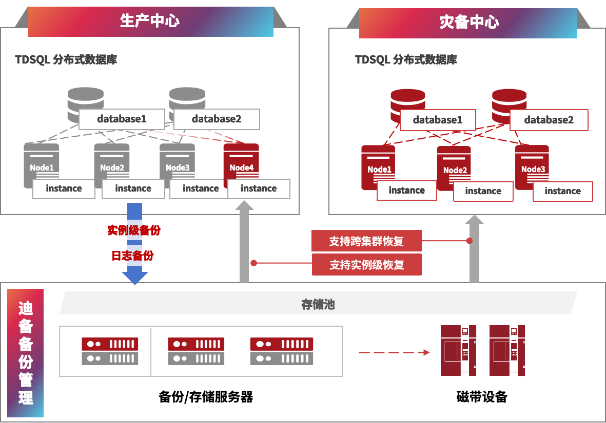 鼎甲迪備 TDSQL 分布式數(shù)據(jù)庫(kù)保護(hù)方案還提供異地容災(zāi)解決方案,通過遠(yuǎn)程復(fù)制功能將備份集復(fù)制一份或多份到異地災(zāi)備中心,用戶可從異地備份中直接恢復(fù)數(shù)據(jù),確保業(yè)務(wù)連續(xù)性和穩(wěn)定性。