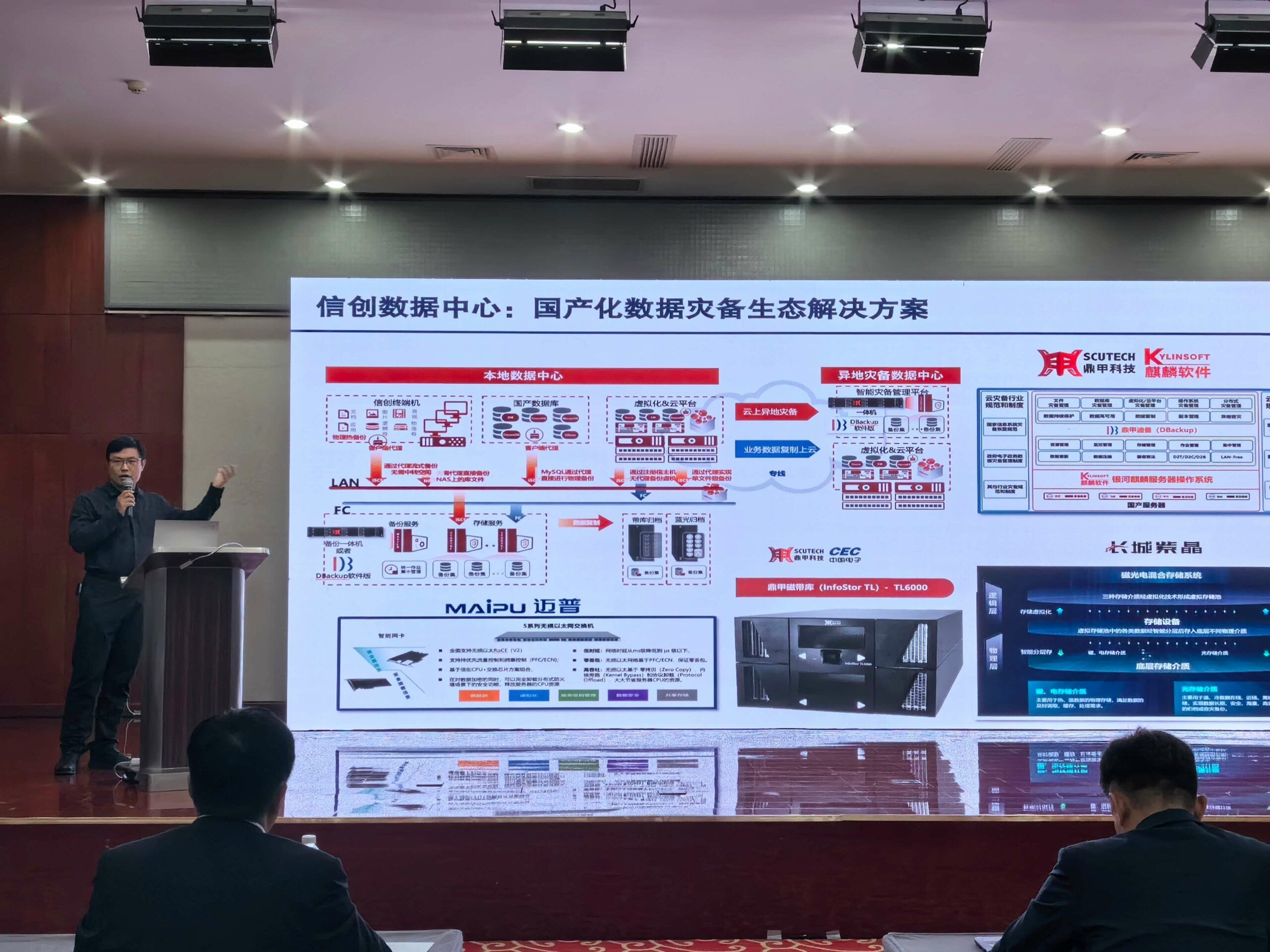 多家優(yōu)秀企業(yè)代表分享了在行業(yè)應(yīng)用協(xié)同創(chuàng)新中的最新成果。鼎甲北區(qū)技術(shù)總監(jiān)姜思亮帶來了《信創(chuàng)成功方案和實施案例》主題演講。中國電子致力于聯(lián)合生態(tài)優(yōu)勢力量,聚力打造產(chǎn)品能力融合解決方案。其中,鼎甲作為中國電子旗下唯一的數(shù)據(jù)保護(hù)企業(yè),PKS 體系的重要成員,其國產(chǎn)數(shù)據(jù)保護(hù)平臺融合了備份、容災(zāi)、CDM、重復(fù)數(shù)據(jù)刪除、磁帶歸檔等功能模塊,兼容適配多種操作系統(tǒng)、海量文件、數(shù)據(jù)庫、虛擬化平臺、云計算平臺、大數(shù)據(jù)應(yīng)用、云原生應(yīng)用等各類資源,為用戶提供成熟穩(wěn)定、性能優(yōu)越、安全合規(guī)的整體解決方案。