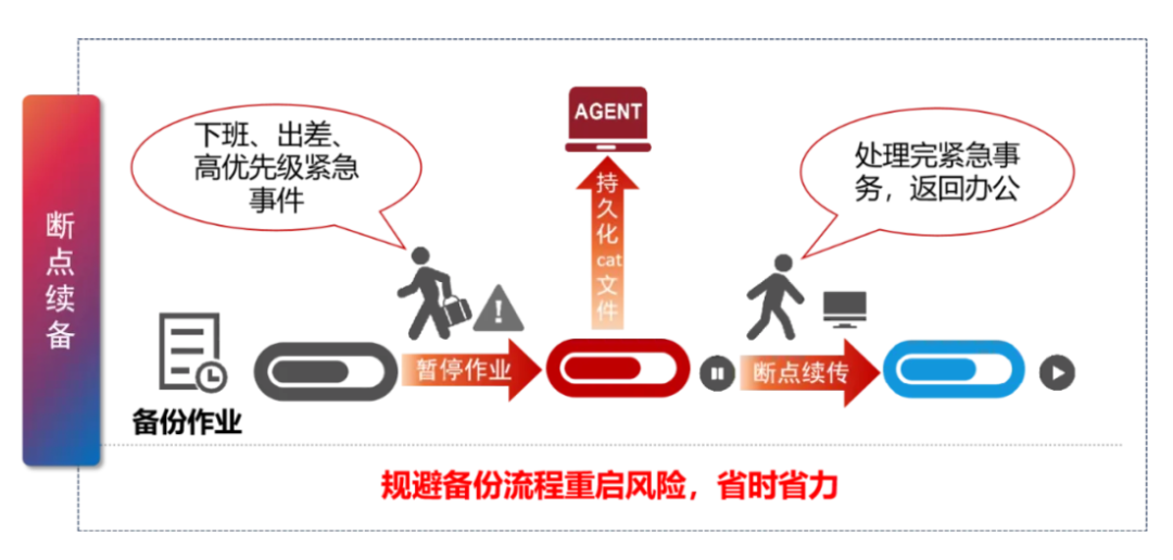 允許用戶在個人數(shù)據(jù)備份過程中隨時暫停備份任務(wù),并支持從上次中斷處繼續(xù)備份作業(yè),直至完成剩余部分。這一功能有效提升了備份效率,規(guī)避了因緊急要務(wù)導(dǎo)致備份作業(yè)重啟的難題,為用戶提供了一種更加靈活、高效的備份解決方案。