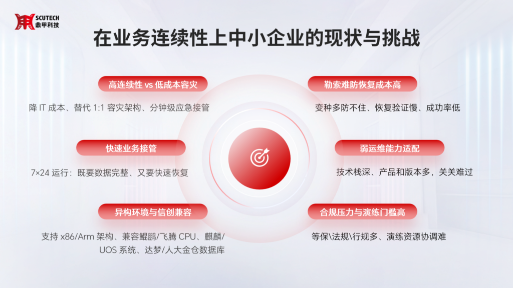 隨著數(shù)字化建設(shè)的持續(xù)深入,中小企業(yè)在業(yè)務(wù)連續(xù)性方面面臨多重挑戰(zhàn):