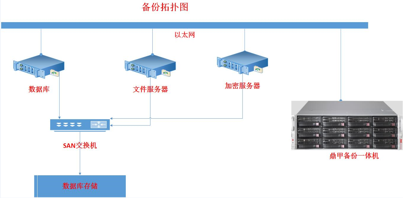 在數據庫服務器、文件服務器、加密服務器上安裝鼎甲迪備客戶端,即可實現在本地局域網內將數據備份到鼎甲一體機。通過鼎甲運維級分布式Web管理平臺,對應用服務器和數據保護服務器進行統一的配置和管理。