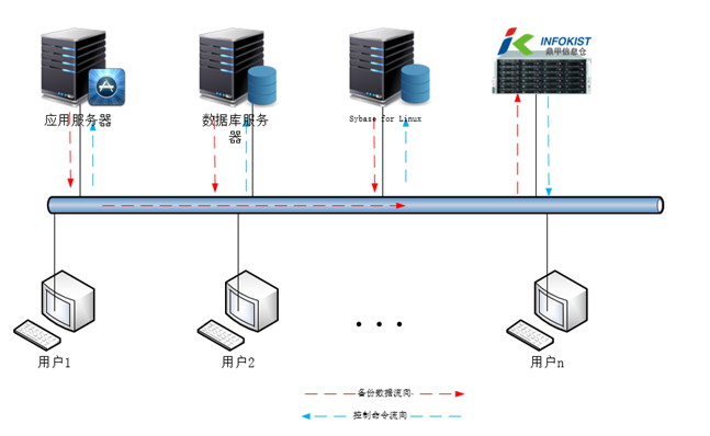 在各個(gè)需要做數(shù)據(jù)保護(hù)的生產(chǎn)服務(wù)器、用戶終端等設(shè)備上安裝鼎甲備份客戶端,將信息倉(cāng)旁接入到公司的網(wǎng)絡(luò)環(huán)境,根據(jù)用戶的數(shù)據(jù)保護(hù)需求,制定備份作業(yè)計(jì)劃,鼎甲備份軟件根據(jù)計(jì)劃自動(dòng)運(yùn)行作業(yè)計(jì)劃,將各個(gè)數(shù)據(jù)點(diǎn)的數(shù)據(jù)集中備份到信息倉(cāng)做集中在線數(shù)據(jù)保護(hù)。