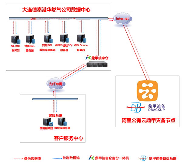 大連德泰港華燃氣公司是國有燃氣公司與香港港華公司合資公司,支撐著大連開發(fā)區(qū)燃氣的供應,在沒有部署鼎甲的備份系統(tǒng)之前,用戶重要業(yè)務系統(tǒng)的oracle、MSSQL數(shù)據(jù)庫、文件完全需要人工手動的定期備份,對做數(shù)據(jù)備份人的經(jīng)驗和能力要求特別高,費時費力,備份數(shù)據(jù)分散,不能進行統(tǒng)一管理,而且有時還存在恢復失敗的情況